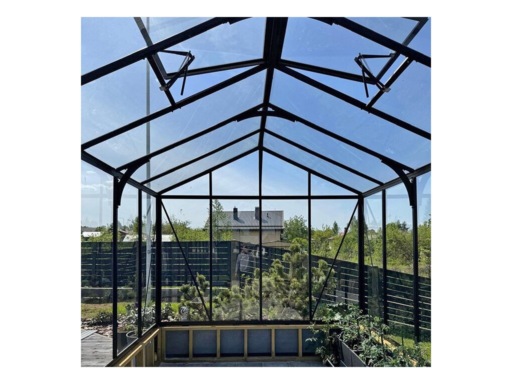 Skleník možno osadit polykarbonátem alebo 4 mm tvrzeným bezpečnostním sklem. Volba výplní umožňuje prizpusobit skleník tomu, co chcete pestovať a jaké podmínky preferujete – zda maximum svetla a čistý vzhled skla, alebo lepší izolaci a odolnosť polykarbonátu. Pre komfort používanie sú součástí riešenie tiež strešné okna, ktorá pomáhají udržovat vhodné klima uvnitr.