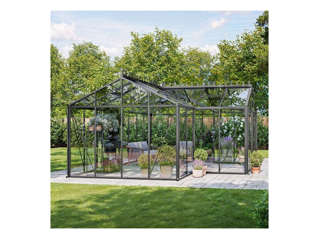 - Vysoká úroveň prispôsobenie: volba barev RAL, stylu dverí a riešenie ventilace umožňuje prizpusobit skleník podle vašich specifických potreb a prání.