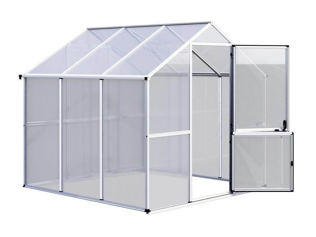 Polykarbonátový skleník KGT Callas III 2,27 × 2,27 m v barve prírodní hliník je ideálním vstupním modelem do sveta skleníkov. Má široké, uzamykateľné, delené otočné dvere a strešné okno s automatickým otvíračem pre optimální vetranie. Vďaka kvalitní nemecké výrobe, robustní hliníkové konštrukciu a tepelne izolačním dutinkovým deskám ISO z polykarbonátu o tloušťce 6 mm získáte odolný a stabilné skleník pre rané jarní pestovanie i celou sezónu.