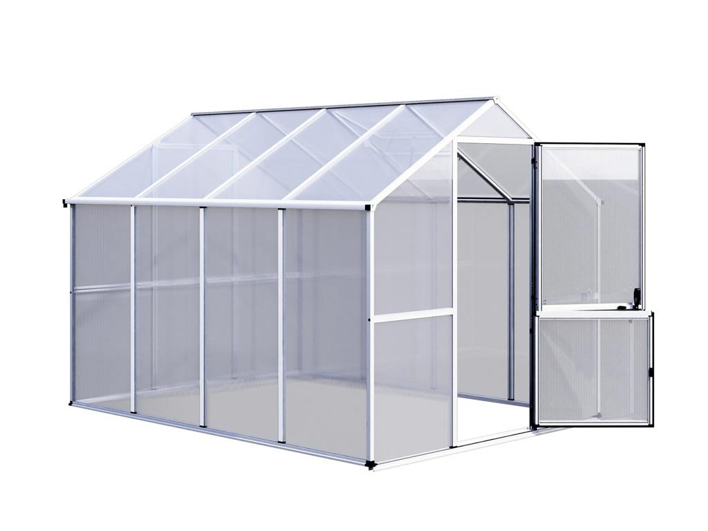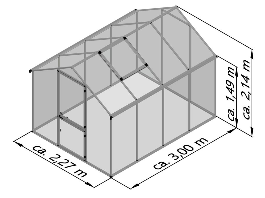 S výškou steny 1,49 m a velkorysou výškou hrebeňa 2,14 m je zde dostatek prostoru pre zahradničení. To znamená, že rajčata a okurky môžu bez problému rast nahoru a plne sa rozvíjet. Robustní hliníková konštrukcie a pruhledné, tepelne izolační 6 mm silné dvojité steny ISO z vysoce odolného polykarbonátu zabezpečujú optimální stabilitu. K dispozici sú tiež okapy s odtoky na obou stranách. Skleník je ideální pre pestovanie rostlin na začátku jara.