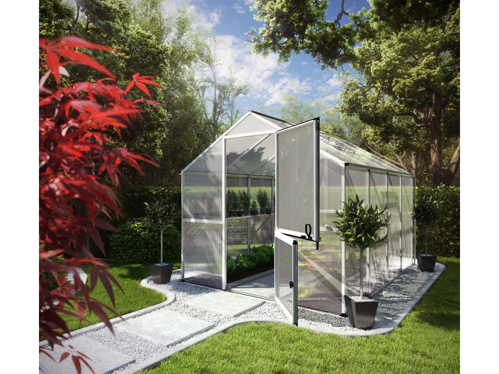 Polykarbonátový skleník KGT Callas IV 3 × 2,27 m v barve prírodní hliník je ideálním vstupním modelem do sveta skleníkov. Má široké, uzamykateľné, delené otočné dvere a strešné okno s automatickým otvíračem pre optimální vetranie. Vďaka kvalitní nemecké výrobe, robustní hliníkové konštrukciu a tepelne izolačním dutinkovým deskám ISO z polykarbonátu o tloušťce 6 mm získáte odolný a stabilné skleník pre rané jarní pestovanie i celou sezónu.
