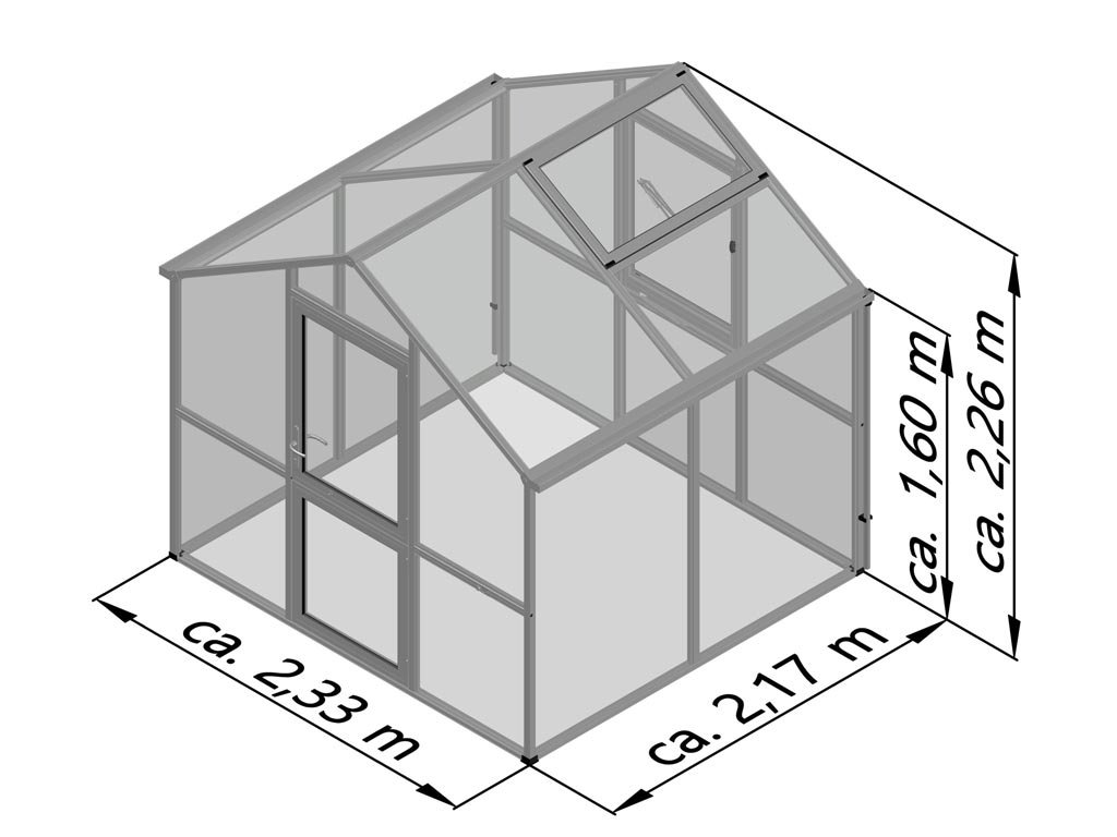 | Výška skleníku (zařazení do kategorie): | 2,3 m |
