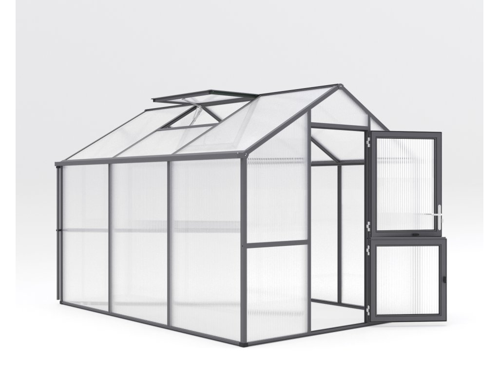 Skleník Iris je dostupný ve trech barevných variantách: prírodní hliník, jedlove zelená (RAL 6009) a antracitove šedá (DB 703). Vďaka tomu si môžete vybrat design, ktorý nejlépe zapadne do vaší zahrady.