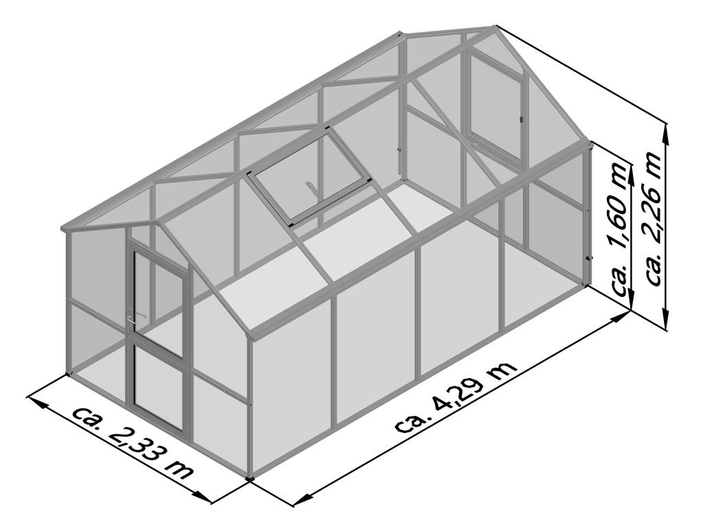 Záhradný skleník KGT Iris IV 4,3 x 2,3 m, sivá hliník