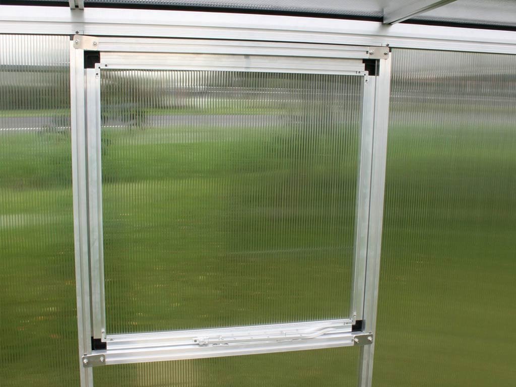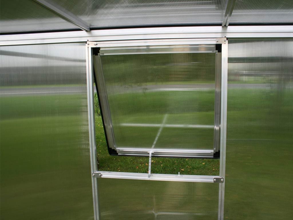 Zasklení tvorí ISO komôrkové desky z polykarbonátu o tloušťce 6 mm, ktoré poskytují tepelnou izolaci pre rané jarní pestovanie i celou sezónu. Pevné uchycení desek po obvodu v profilech eliminuje nutnost drobných spon a prináša vyšší odolnosť voči vetru a nepríznivému počasí.