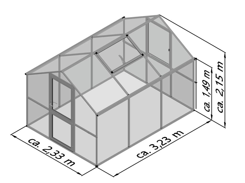 Záhradný skleník KGT Rose III 3,2 x 2,3 m, sivá hliník