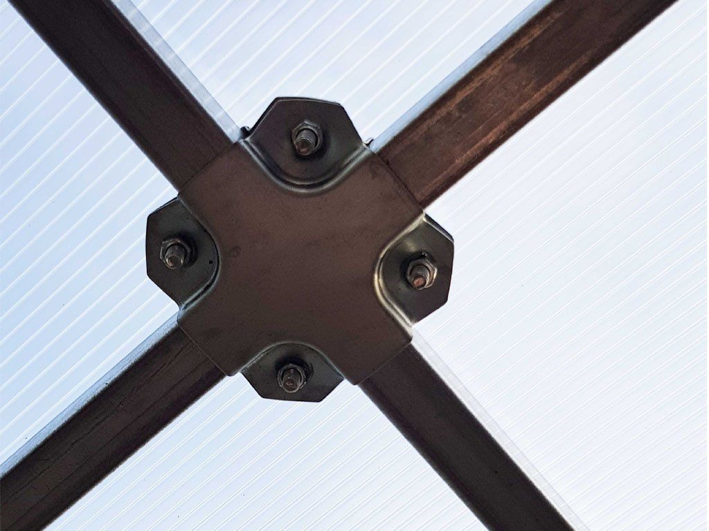 - Polykarbonátové dosky sa skrutkujú k konštrukcii pomocou prítlačných terčov - vyššiu odolnosť voči vetru