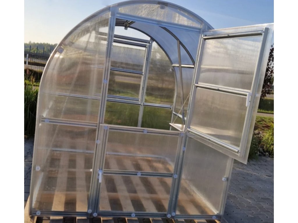 Zahradní skleník z polykarbonátu LEGI Mint je novým prírustkem medzi oblíbené obloukové skleníky. Konštrukcie skleníku je vyrobená z žárove pozinkovaných profilov o síle 1 mm a splňuje obzvlášte vysoké požadavky na kvalitu a odolnosť. Opláštení skleníku je tvoreno 4 mm vysokogramážním dutinkovým polykarbonátem s jednostrannou UV ochranou, ktorý má zvýšené tepelne izolační vlastnosti.