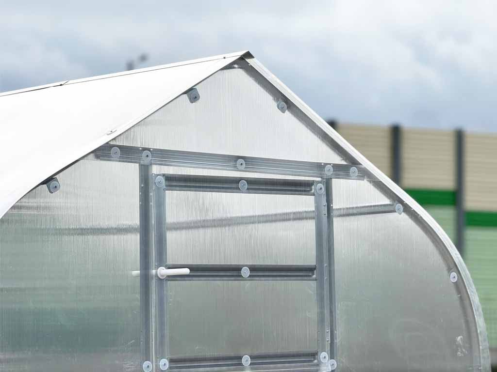 Zasklenie tvorí komôrkový polykarbonát hrúbky 6 mm.