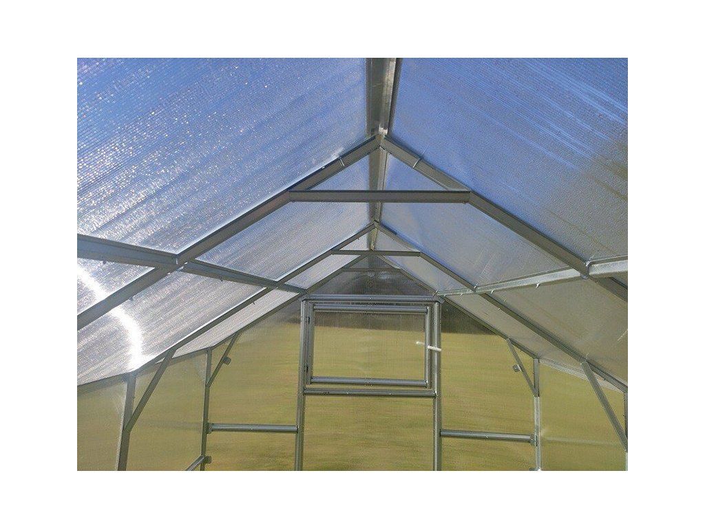 záhradný skleník LEGI RUBARB 6 x 2,35 m, 6 mm (Hranatá konštrukcia) – konštrukcia z ocele - pozinkované profily (hrúbka profilu 1 mm) vo farbe strieborná.