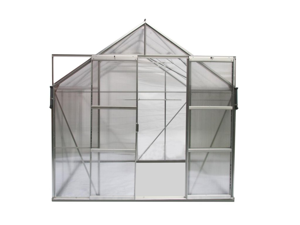 Obsahom balenia sú dvojkrídlové posuvné dvere (š x v otvore = 1,22 x 1,91 m), AL profily, presklenie, 2x strešné ventilačné okienko s manuálnym otváraním, všetok spojovací materiál. Skleník je možné postaviť napr. na murovanú podmurovku alebo na základňu z pozinkovaného plechu. Pri stavbe bez podmurovky dokúpenie základne odporúčame. Ku skleníku je možné dokúpiť rad nadštandardného príslušenstva - poličky, regály, ďalšie vetracie strešné aj bočné okienka, automatické otvárače k týmto okienkom, odkvapové sady, teplomery, vlhkomery, zavlažovacie zariadenia, elektrické odporové vykurovanie pôdy.
