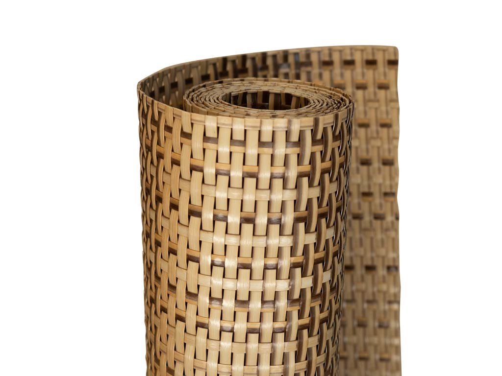 Zástena je vyrobená z tvarovo aj farebne stabilného 100% recyklovateľného polyetylénu (inak nazývaný ako syntetický ratan, polyratan alebo technoratan) pomocou technológie zvárania jednotlivých vlákien, čo zaistí, že sa materiál pri tvarovaní nestrapká. Materiál je odolný voči UV žiareniu, mrazu, plesniam, znečisteniu aj vode. Je pevný v ťahu a je možné ho akokoľvek ohýbať a strihať do požadovaného tvaru. Umelý ratan je obojstranný, ľahko umývateľný materiál, vhodný na vonkajšie aj vnútorné použitie. Na rozdiel od prírodného ratanu nie je na umelom ratane poznať zub času, ktorý sa najčastejšie prejavuje pri prírodnom ratane lúpaním a štiepením.