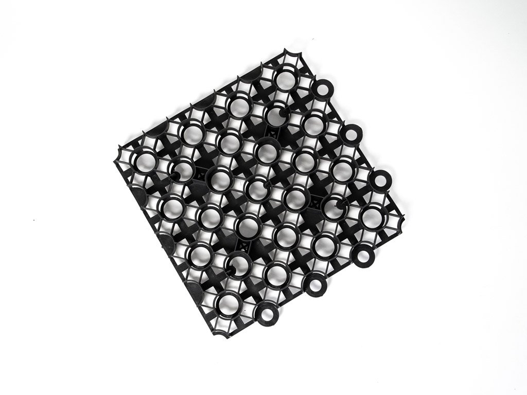 Vďaka zámkom sú jednotlivé tvárnice k sebe pevne spojené a je možné ich použiť aj v prechode do miernych svahov. Pokládku vykonávajte na vyrovnávaciu vrstvu, kedy vždy začnete pri najnižšom mieste a postupne smerujete k najvyššiemu. Ak by ste aj napriek predchádzajúcemu vyrovnaniu povrchu predsa len potrebovali nejakú časť dorovnať môžete použiť hlinitý piesok alebo vhodnú zmes jemnej drviny a piesku. Akonáhle celú zamýšľanú plochu pokryjete zatrávňovacou dlažbou, veľmi starostlivo si skontrolujte stabilitu jednotlivých tvárnic. Tie sa totiž nesmú hýbať a ani prehýbať. Ignorovanie tohto kroku môže vo výnimočných prípadoch pri väčšom zaťažení zapríčiniť prasknutie tvárnic.
