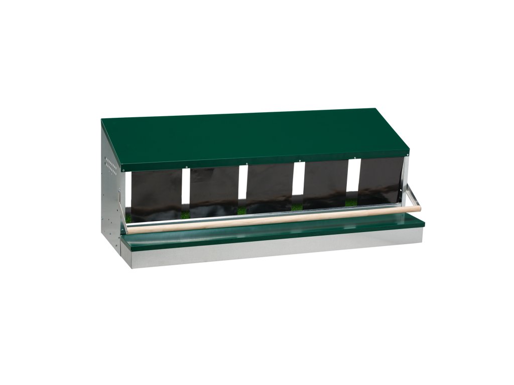 Znáškové hniezdo pre sliepky so zberným košíkom na vajíčka, jednomiestne, kapacita 5 nosníc, dno hniezda je so sklonom, vyrobené z pozinkovaného kovu s plastovým dnom. Hniezdo...